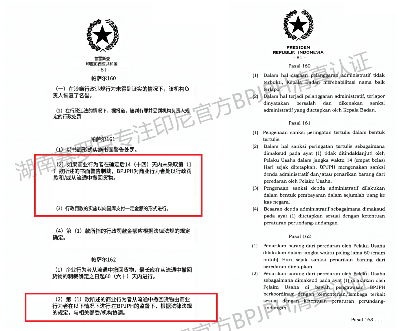 总统法令针对不履行清真认证义务的企业实施处罚措施以及申请资料准备清单。