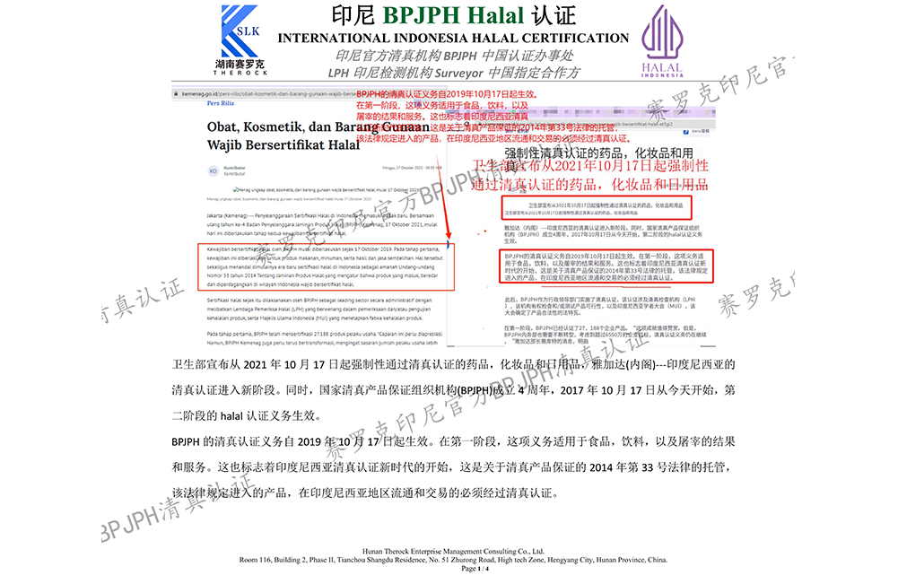 卫生部宣布从2021年10月17日起强制性通过清真认证的药品,化妆品和日用品,印尼官方BPJPH认证进入新阶段。